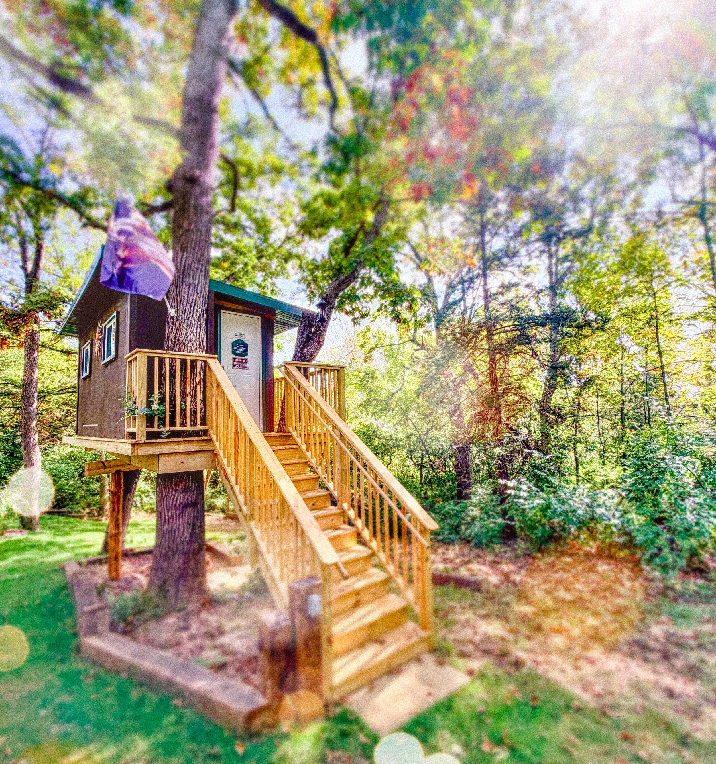 Experience a cozy night nestled among the trees in this charming treehouse. Fun for the kids… and the “big kids”.
